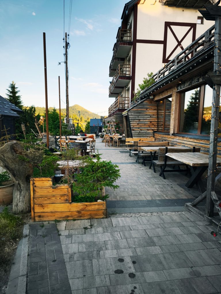 Na samo desetak minuta lagane šetnje od našeg apartmana Oaza, nalazi se kafe-restoran Chalet Vrhovi Kopaonika — mesto koje rado posećujemo gotovo svakog boravka. Savršeno za prvu jutarnju kafu uz pogled na planinu, miris borova i tišinu koja prija duši.